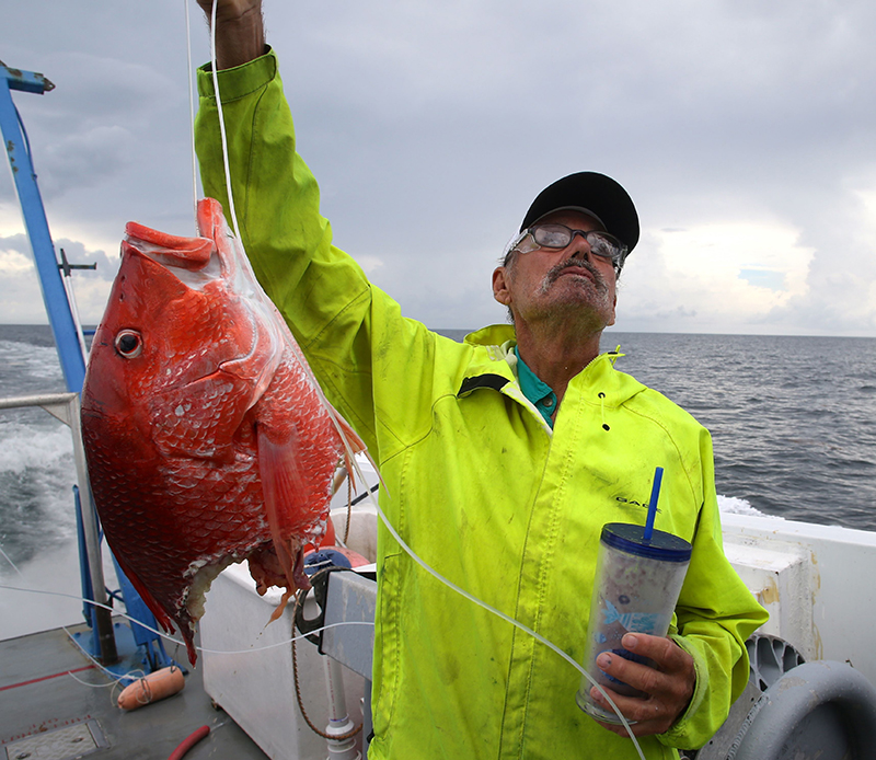 Fisherman with snapper-depredation_Credit David Hay Jones courtesy of the MSU Marine Fisheries Ecology Program-800