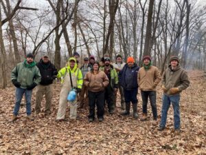 Volunteers removing invasive species at the Indiana chapter, 2025.