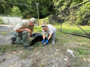 Tabitha learning to pull bear tooth for aging from Dan summer 2024 2
